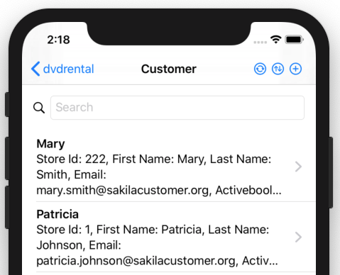 A demo application using the Sakila database is provided: DVDRentalCoreData.