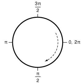 (pointing down), with an arc distance of 2/16 of the circumference.