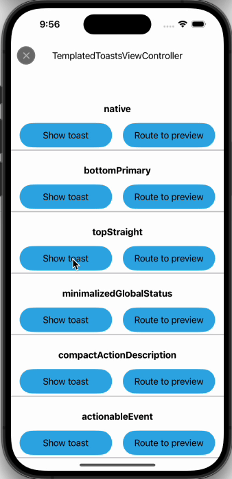 - Swift Modern Concurrency: Harness the power of Swift's async/await for toast management.