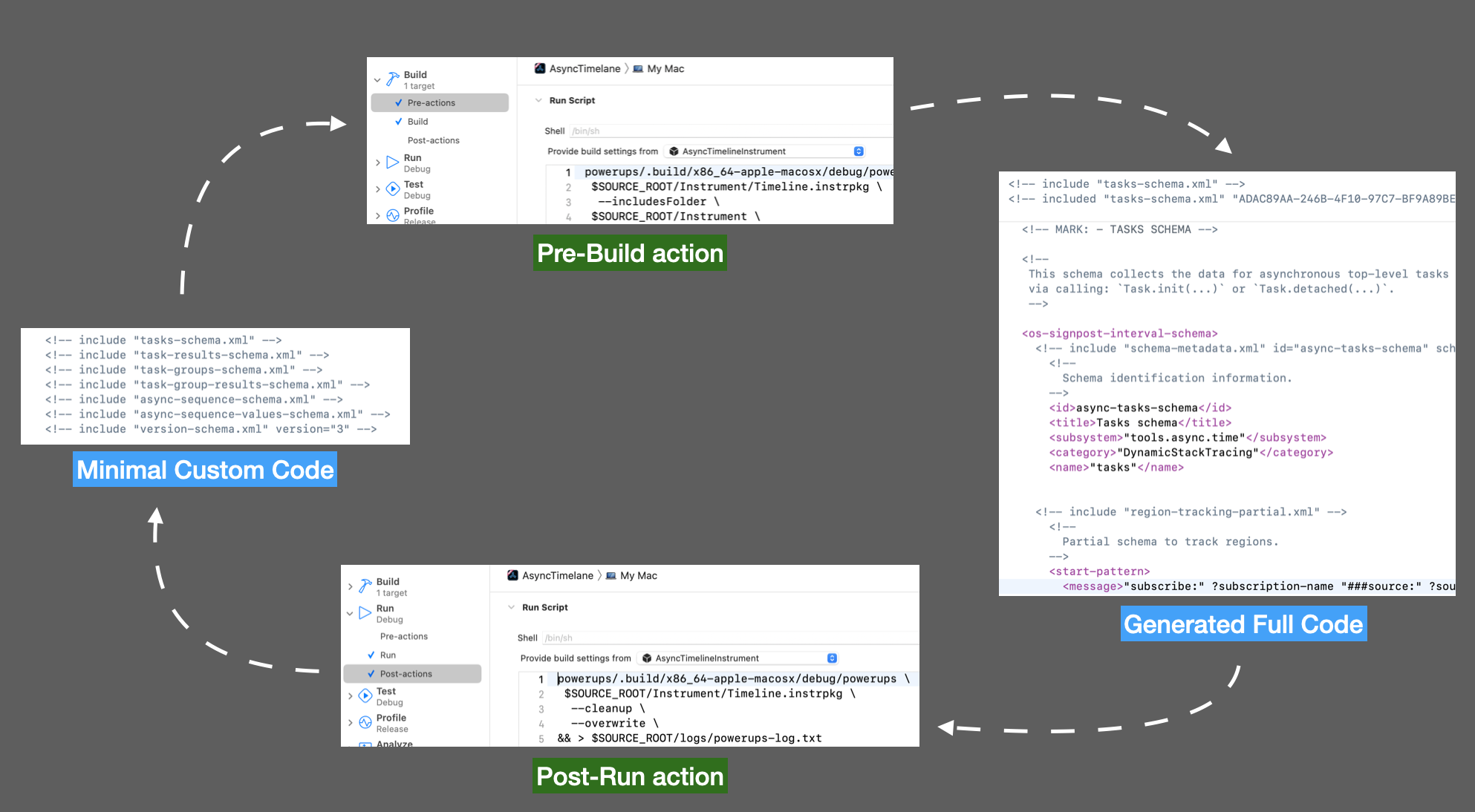 - Add a Build/pre-action to run the powerups on your instruments file: